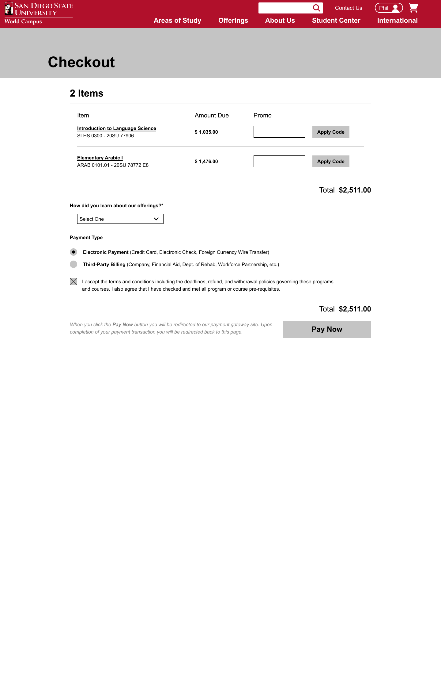 SDSU Global Campus needs a usability overhaul to bring it in line with current competition and best practices. The platform features a wide range of program offerings, but is inconsistent in how it displays and provides access to those offerings, making it difficult to spark interest & convert prospective students.